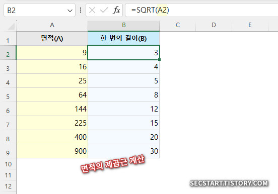 백문이 불여일견! 직접 예제를 따라 해보면서 SQRT 함수와 친해져 봐요.