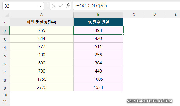 ⚙️ 2. 8진수를 10진수로! OCT2DEC 함수