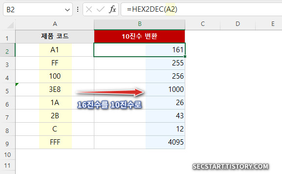 ⚙️ 1. 16진수를 10진수로! HEX2DEC 함수