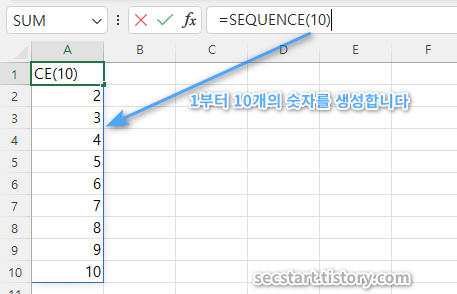 =SEQUENCE(10) // 훨씬 간결하고 직관적