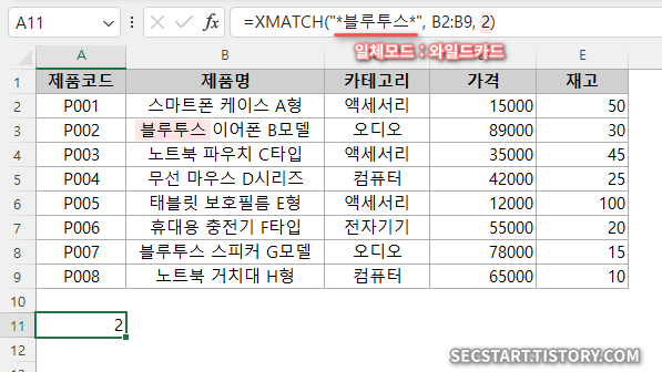 =XMATCH(검색값, 검색배열, [일치모드], [검색모드], [와일드카드])