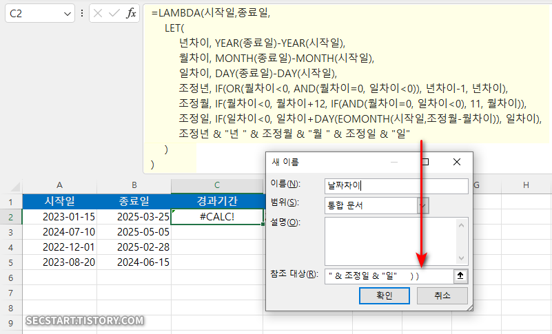 📝 노트: LAMBDA 함수 자체는 정의만 할 뿐, 사용하려면 이름 관리자에 등록하거나 다른 함수 내에서 직접 호출해야 해요.