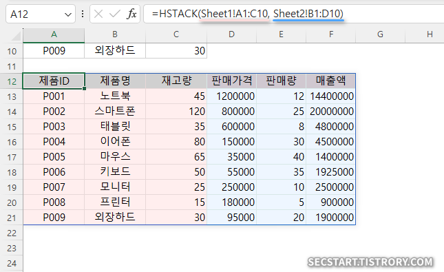 4. HSTACK 함수 활용 팁 🔍