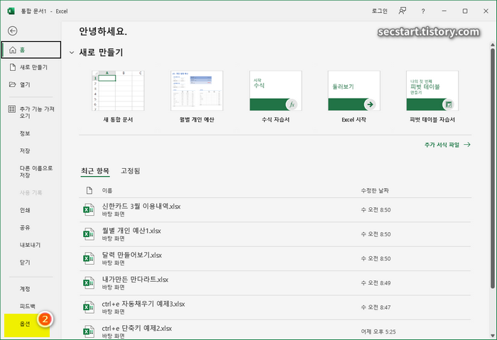 1단계: 엑셀 옵션 창 열기