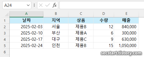 이렇게 하면 모든 월의 판매 데이터를 하나의 테이블로 볼 수 있어 트렌드 분석이나 요약 보고서 작성이 훨씬 쉬워집니다.