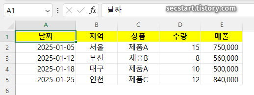 이렇게 하면 모든 월의 판매 데이터를 하나의 테이블로 볼 수 있어 트렌드 분석이나 요약 보고서 작성이 훨씬 쉬워집니다.