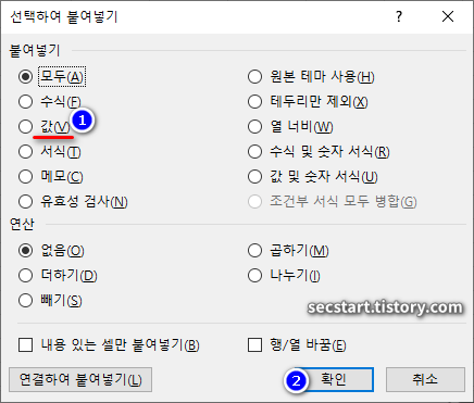 Ctrl + C, 원본 범위 선택 후Ctrl + Alt + V > V: 선택하여 붙여넣기)