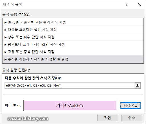 2> 조건부 서식 활용: 홈 탭 → 조건부 서식 → 규칙 관리 → 셀 값이 1-5 범위 밖인 경우 강조