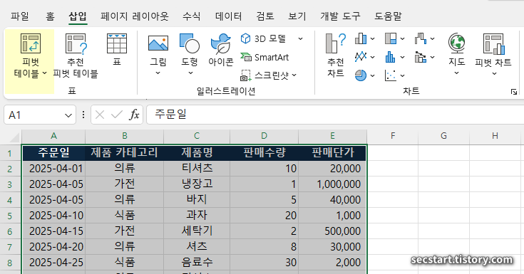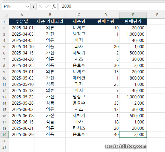 주문일,제품 카테고리,제품명,판매수량,판매단가