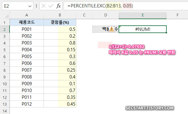 🚫 PERCENTILE.EXC 함수 사용 시 흔한 오류들!