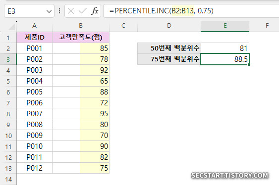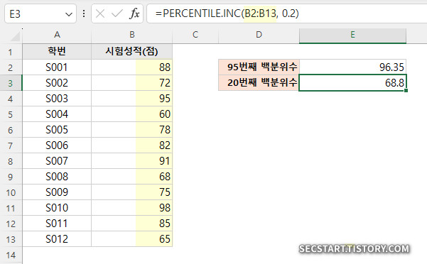 📝 PERCENTILE.INC 함수 사용 예제 (업무 활용 팁!)
