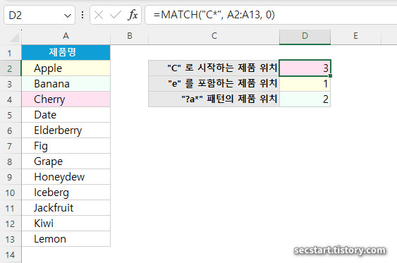 MATCH 함수와 와일드카드 📍