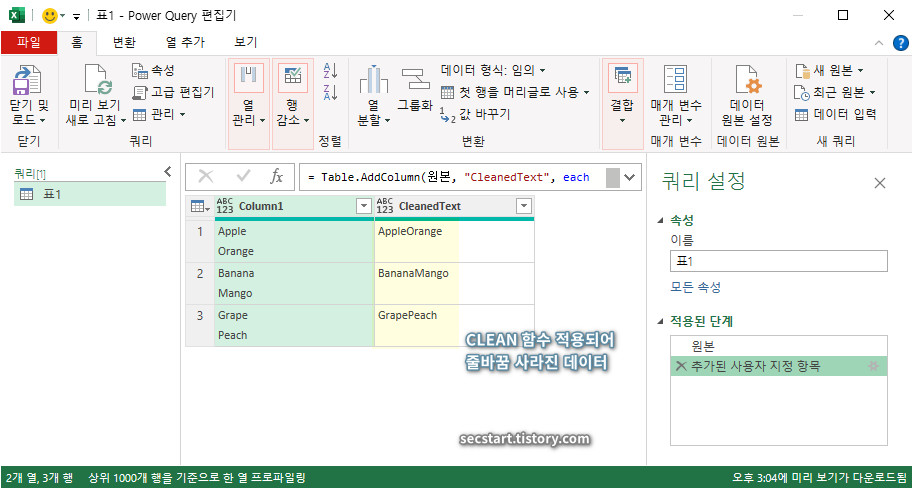 실무 팁: 대량 데이터라면 파워 쿼리로 CLEAN을 자동화하면 시간을 엄청 절약할 수 있어요! ⏰ 파워쿼리에 관해서는 다음에 자세히 살펴 볼께요. 이번에는 간략히...