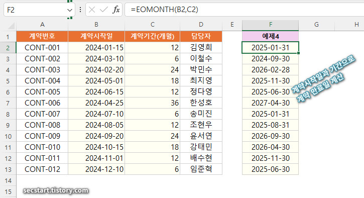 예제 4: 실무 활용 - 계약 만료일 및 갱신일 관리
