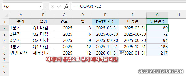 이렇게 하면 각 분기 마감일까지 얼마나 남았는지도 한눈에 확인할 수 있어요!
