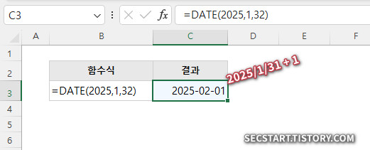 🔍 왜 DATE(2025,1,32)가 2월 1일이 되는 걸까요?