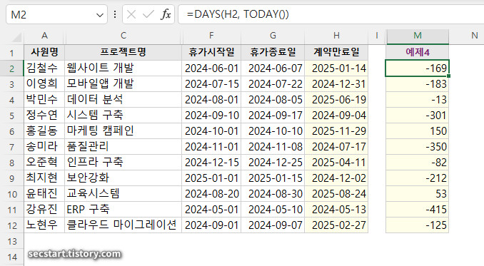실무에서는 프로젝트 계획 수립 시 정확한 일정 산출이 필수인데, DAYS 함수로 간단하게 해결할 수 있어요.