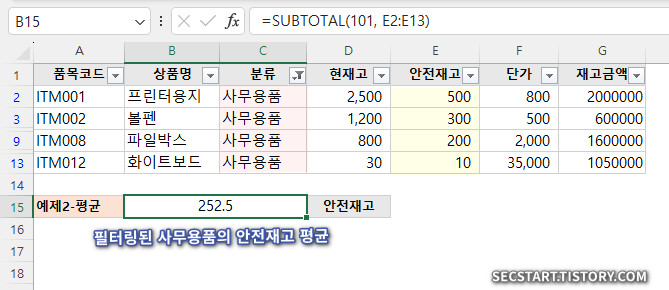 📌 핵심: SUBTOTAL 함수는 필터링된 데이터나 숨겨진 행을 자동으로 인식해서 보이는 데이터만 계산해주는 똑똑한 함수입니다.
