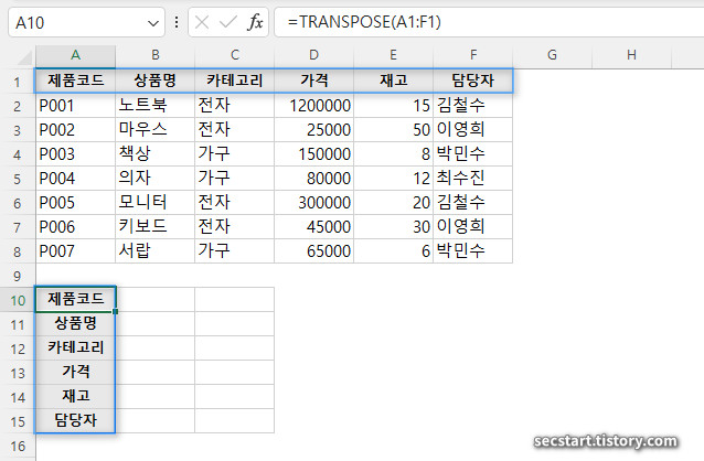 📊 TRANSPOSE 함수 사용 예제