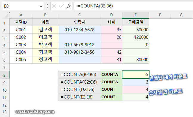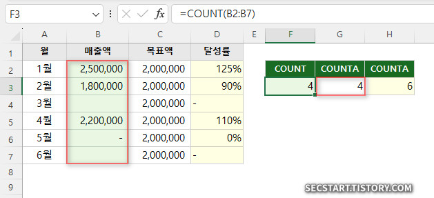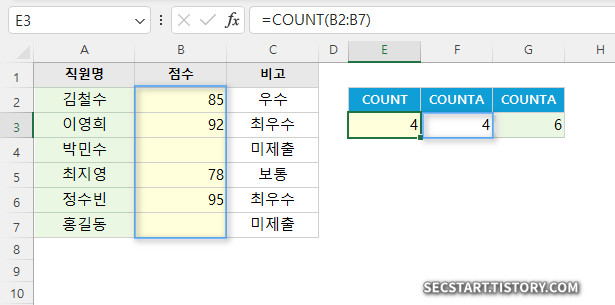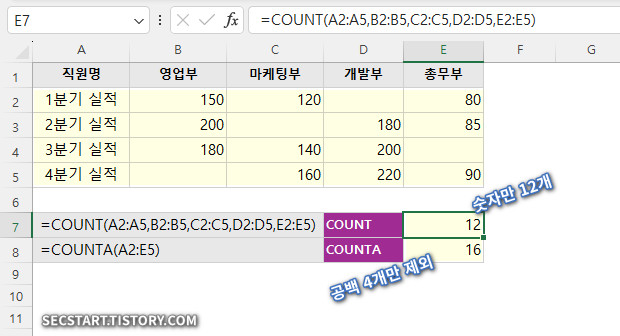 - ✅ COUNTA = 빈 셀만 빼고 다 센다