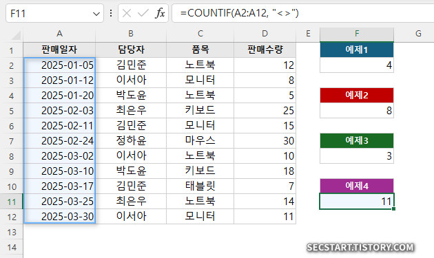 🚀 COUNTIF 함수 기본부터 활용까지 (실무 예제 4종)