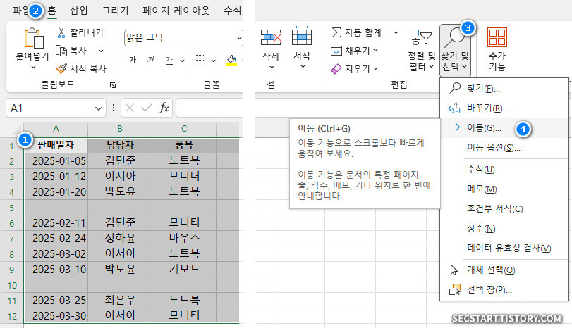 정식경로 🍯: 홈 탭 → 찾기 및 선택 → 이동 옵션 경로로도 접근할 수 있어요.