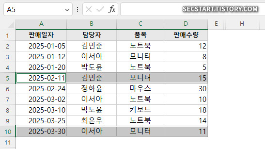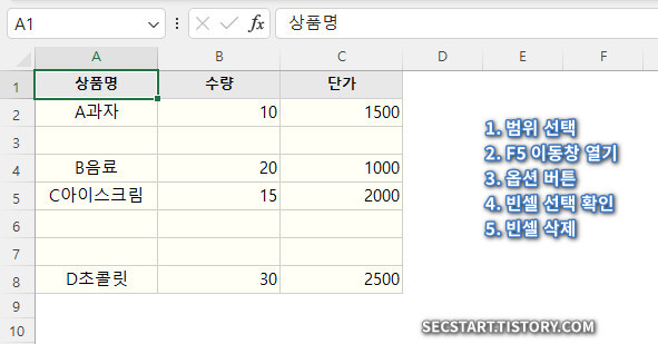 예제 1: 중간중간 빈 행이 섞인 판매 목록 정리하기