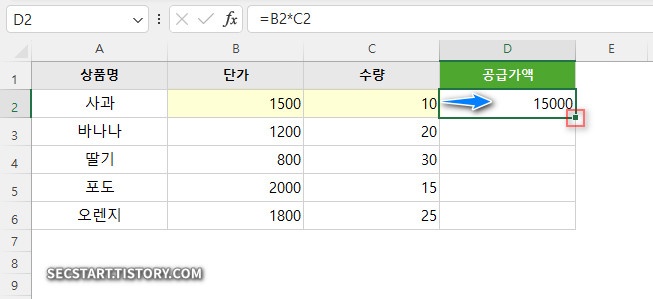 사용 예제: 상품별 공급가액 자동 계산하기