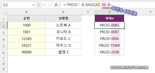 💻 엑셀 BASE 함수, 직접 사용해봐요! (예제 4종 세트)