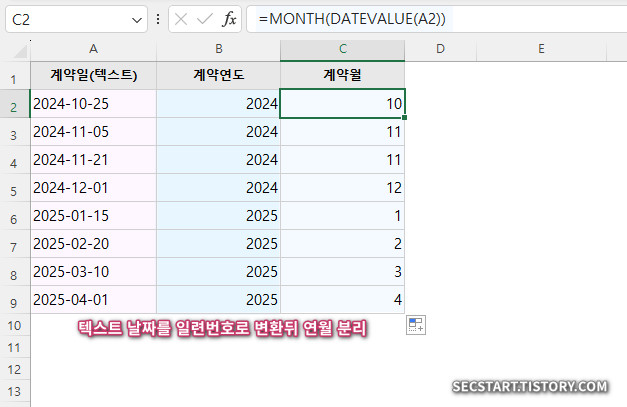 텍스트 형식의 계약일에서 연도, 월만 따로 추출하고 싶을 땐 어떻게 할까요? DATEVALUE 함수와 날짜 추출 함수를 함께 사용하면 간단히 해결됩니다.