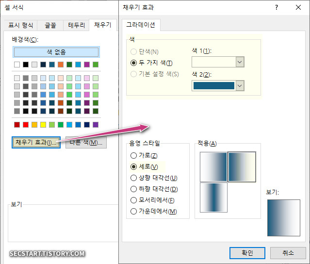 - 채우기 효과(셀서식 채우기탭)를 더하면 개성 있는 패턴 배경 막대까지!