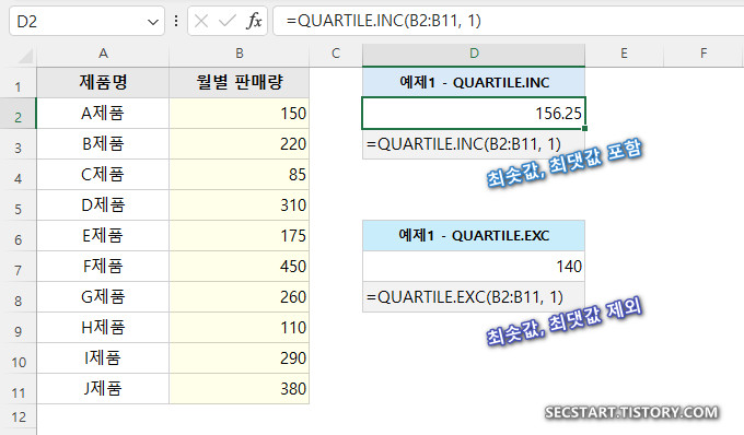 1. QUARTILE.INC 함수 (Inclusive: 포함)