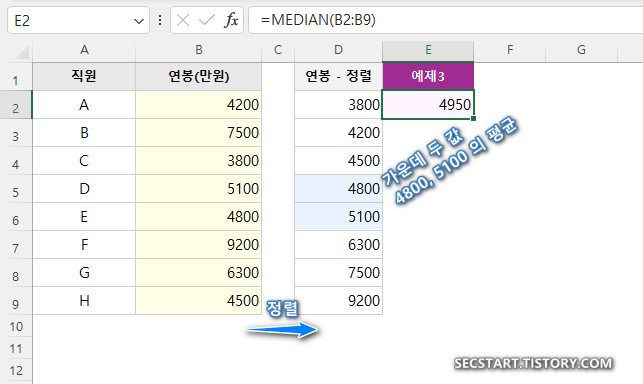 백문이 불여일견! 직접 예제를 통해 MEDIAN 함수를 어떻게 활용하는지 알아볼까요?