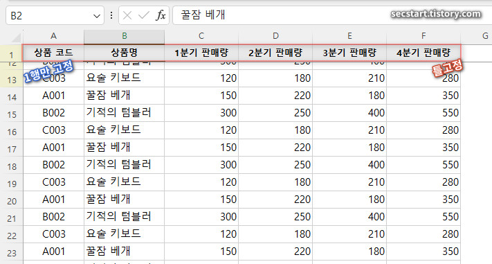 1. 첫 행만 고정하기 (가장 기본!)