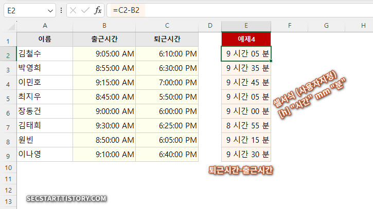예제 4. 실무 응용: 근무 시간 계산하기