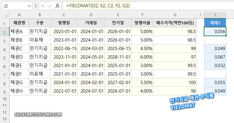 📊 엑셀 YIELDMAT 함수 실전 예제