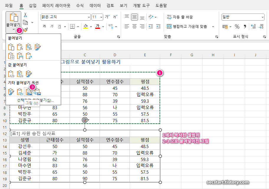 엑셀 그림으로 복사 붙여넣기 3가지 유형 완벽 정리