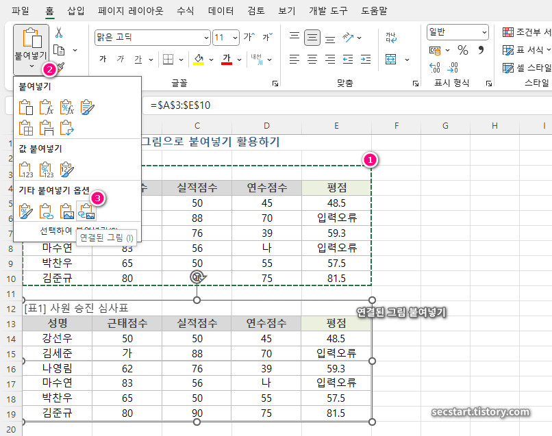 3. 엑셀 연결하여 그림 붙여넣기 (Paste as Linked Picture)