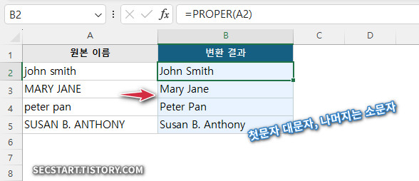 ✒ 엑셀 PROPER 함수, 영어 대소문자 변환 한번에 끝내기