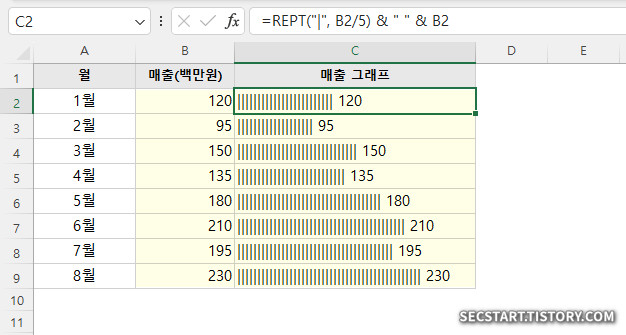 ㄱ. REPT 함수로 '|' 를 반복 표시합니다.
