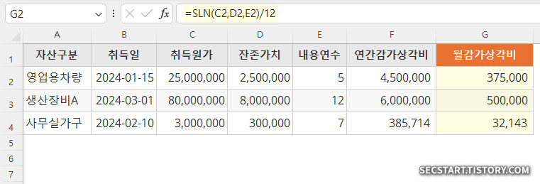 📊 엑셀 SLN 함수로 감가상각비 계산하는 완벽한 방법 | 정액법 마스터 가이드