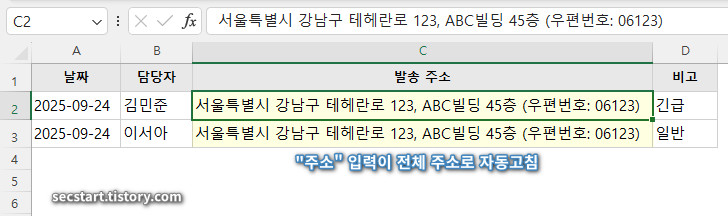 매번 보고서마다 회사 주소를 입력해야 한다면? '주소'라고만 치면 풀 주소가 나오게 해봅시다!