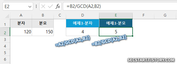 예제 3. 고급 활용: 분수를 가장 간단하게 만들기 (약분)