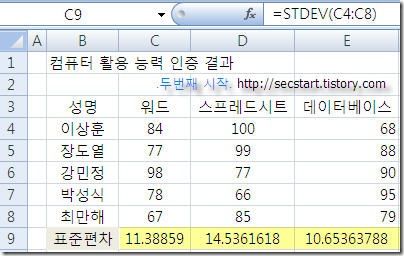 [그림2] 엑셀 STDEV 함수 컴활 기출 문제