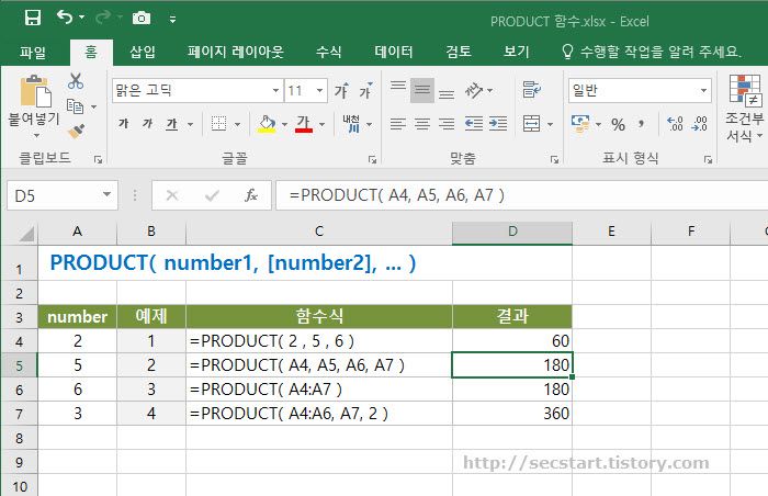 구문 : PRODUCT( number1, [number2], ... )