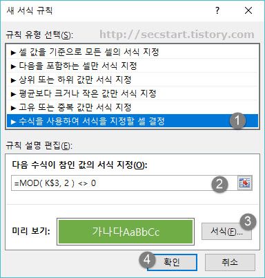 [그림4] 엑셀 조건부 서식 - 수식 사용 전체 단계