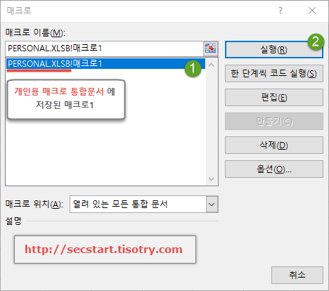 [그림5] 개인용 매크로 통합 문서에 저장된 매크로
