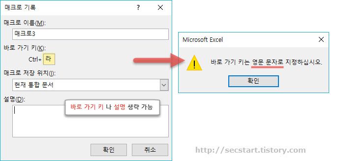 엑셀 매크로 바로가기는 오로지 영문으로.. 가능